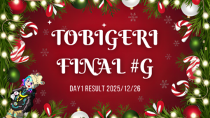 TOBIGERI FINAL #G 2日目結果速報❤️🔥 2025年12月27日 お知らせ 2日目結果 ダウンロードはこちら 各種SNSアカウント TOBIGERIオフィシャルショップはこちら \結果速報はX(旧Twitter)/ \選手たちのリアルな様子はInstagram/ \大会終了後はYoutube/ \おもしろ動画はTiktok/ \テキスト速報&イベントの裏側はThreads/ URL Copied!